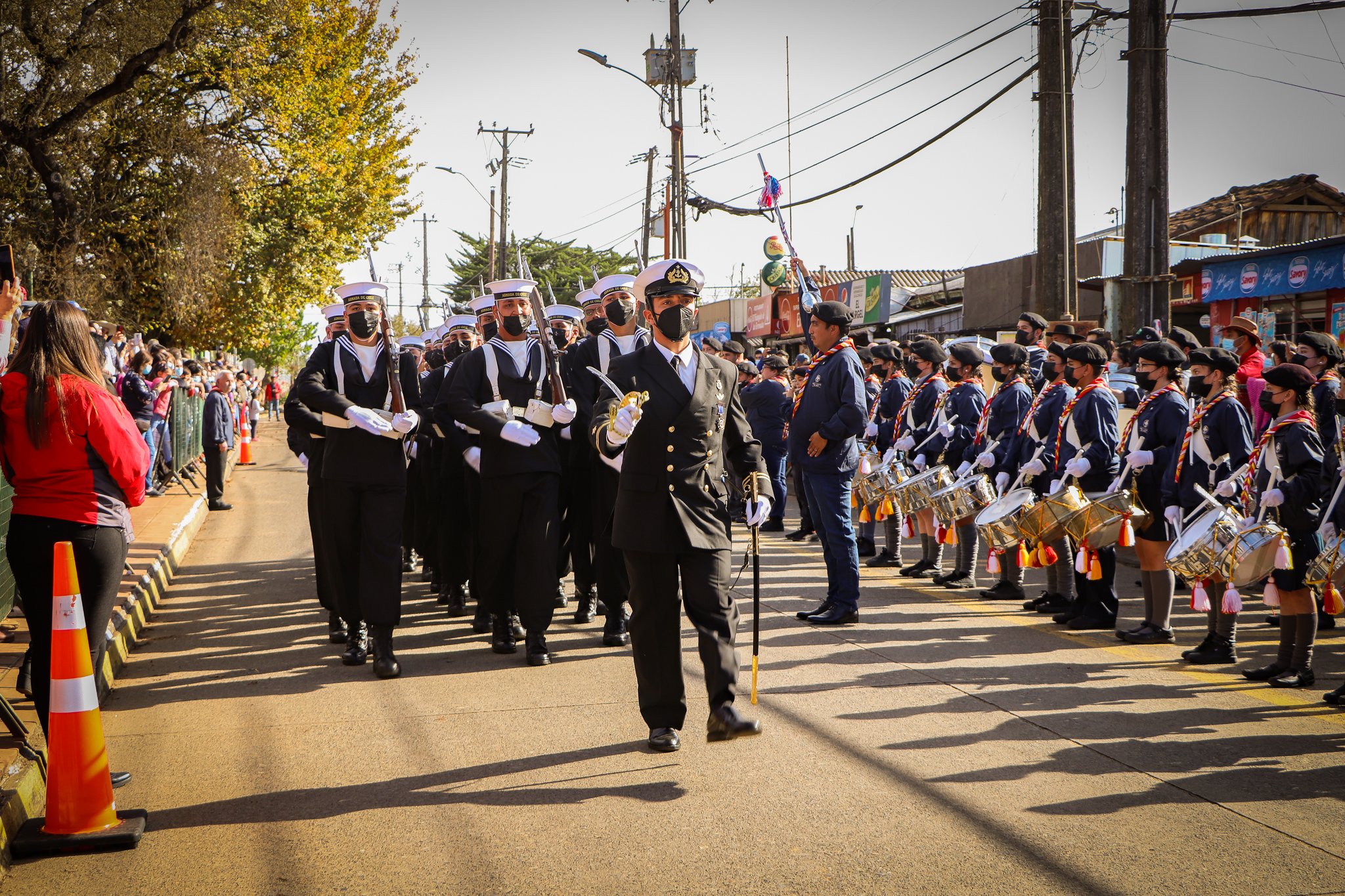 Todos bajo el ritmo de la histórica banda de guerra Luis Alberto Seguel, la que no sólo posee un alto prestigio a nivel comunal sino que fue la encargada de marcar el paso al contingente naval que también se sumó al desfile.