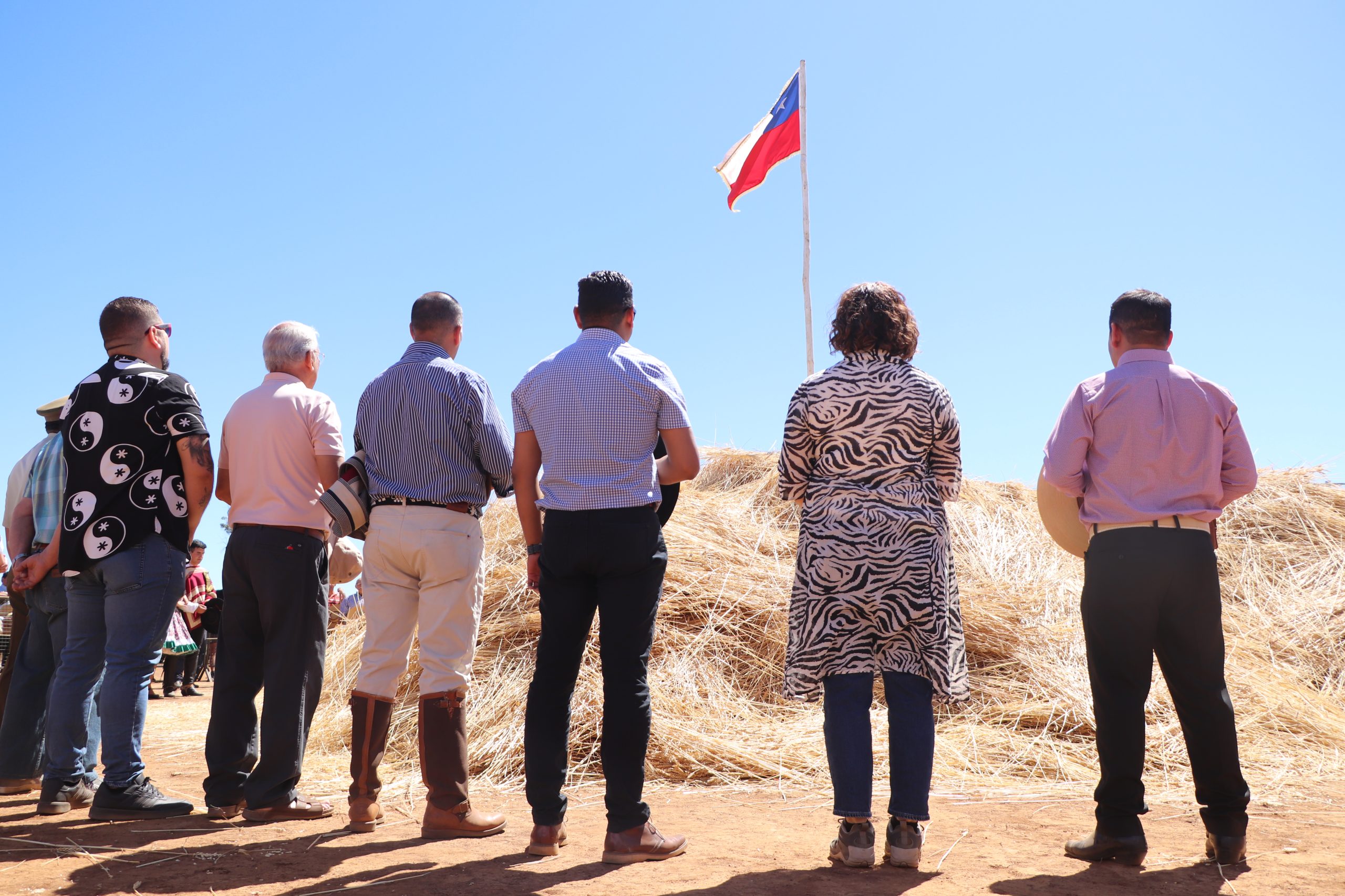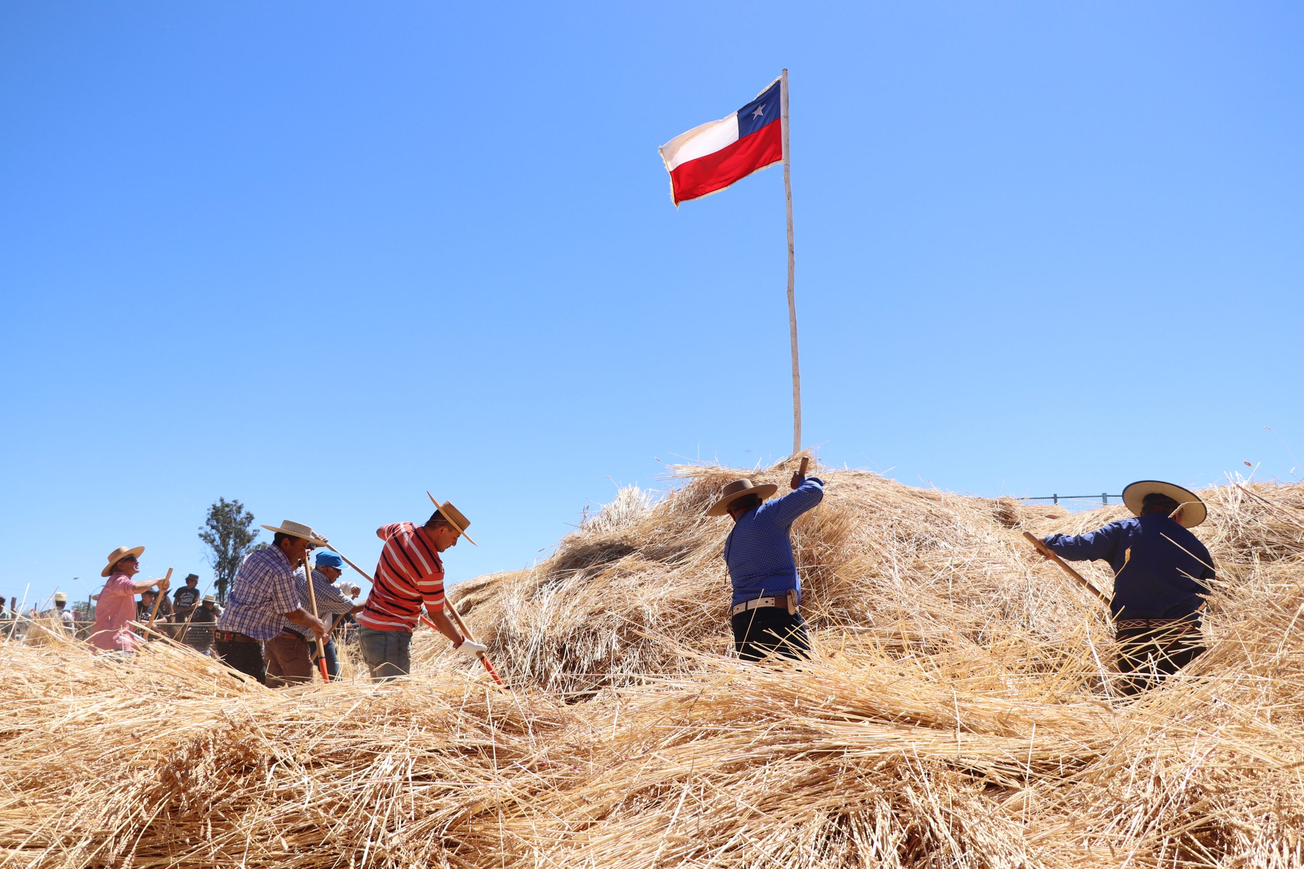 Luego vino el himno nacional corte de cinta, para posterior a esto hacer la entrega oficial de la trilla al mandarín, quién ordenó a los horqueteros para comenzar con la separación del trigo y de la paja.
